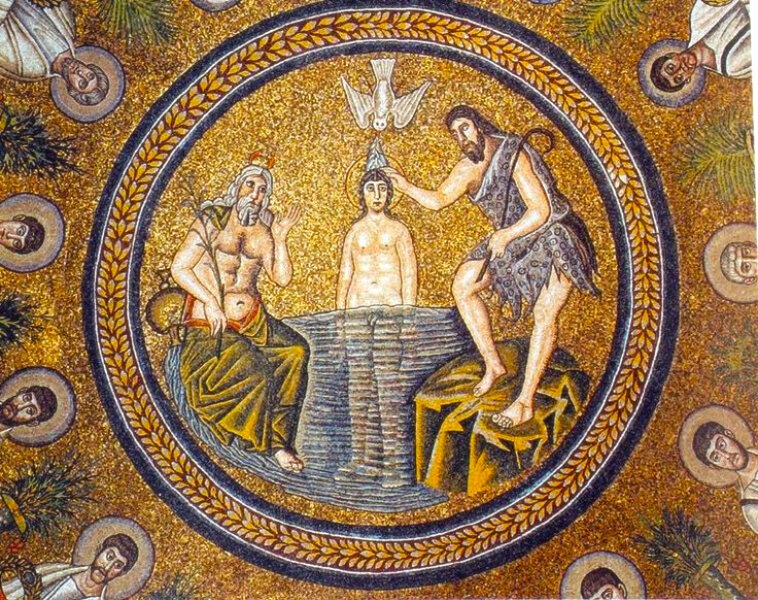Így válik a fény törvénye szerint Keresztelő János, a "tüzes" Nap előtt, azaz Jézus előtt járó, „hanyatló Nap”, vagyis a "vizes Hold” szimbólumává: ezáltal pedig a vízzel keresztelés hagyományának "megalapítójává".