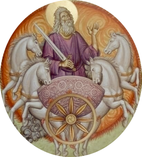 Illés, Illyé, Éliás, Héliosz: nemcsak nevében, de szimbólumaiban is rokonok. A Naptisztelő népek mitológiáiban a tűzszekér, a fehér ló, a naplovak, a napkerék, az égkerék a szoláris lét lényegi jelképei – a földi létezést fizikai és spirituális értelemben is biztosító áldott Nap mitologikus szimbólumai.
