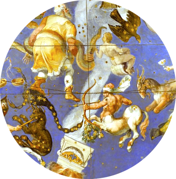 A modern csillagászat és az ősi csillagmitológia egyaránt számon tartja, hogy a Tejút (a galaktikus egyenlítő ) és a Nap éves, látszó útja (az ekliptika) ferde szögben metszi egymást. Ez a metszés két ponton , két naptári időszakban történik: a Nyilas–Skorpió kapuban és az Ikrek–Bika táján. A Nyilas alatti metszéspont különösen is jelentős: ez a ferde metszés a régi világ szemében nem csupán geometriai sajátosság volt, hanem égi kereszt: a világot tartó utak találkozása. Az ekliptika (a Nap égi útja, a Zodiákus 12es rendje), amely a földi, naptári idő kijelölője, tehát az ember idejének az útja, valamint az Égboltozatok keresztül vonuló Tejút, a hagyomány szerint a lélek örök útja, a halhatatlanság sugárzó hídja, amikor keresztezi egymást a földi idő rátalál a mennyei útra, a világ pedig kettős fényt mutat.