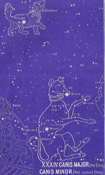 Ahogyan régen nevezték, Nyárhó közepén, Szent Jakab havában, Áldás idején, Rák zodiákus végén, amikor a fejünk felett ragyogó Nap a Procyonnal és a Szíriusszal egy égi vonalba kerül, égi kutyák "vonyítanak" a napfényes égbolton fölöttünk... Pontosabban a kutyacsillagképek és kutyacsillagok: a Procyon és a Szíriusz, a Kis és Nagy Kutya fénylő csillagai. Amelyről a "kánikula" szó maga is mesél...